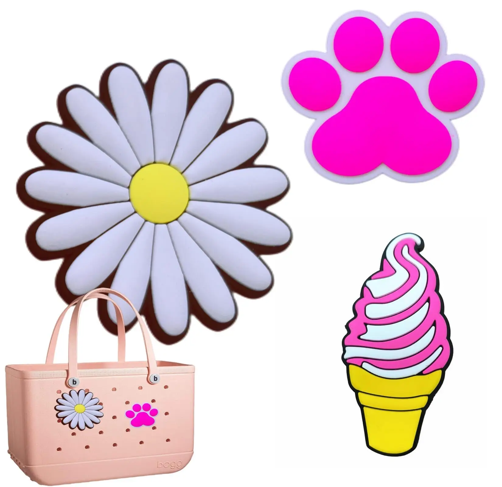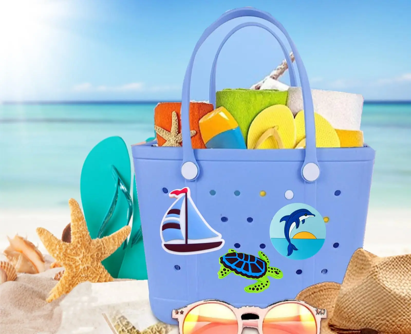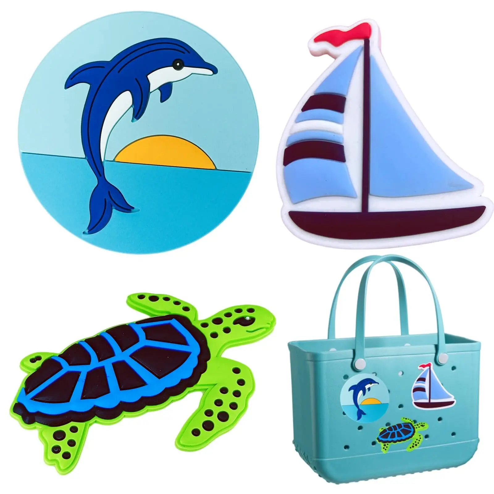Charm Accessories for Bogg Bag - Rubber Beach Bag Accessories Charm Insert, 3pcs Flowers Dolphin Beach Totes Charm Decoration In