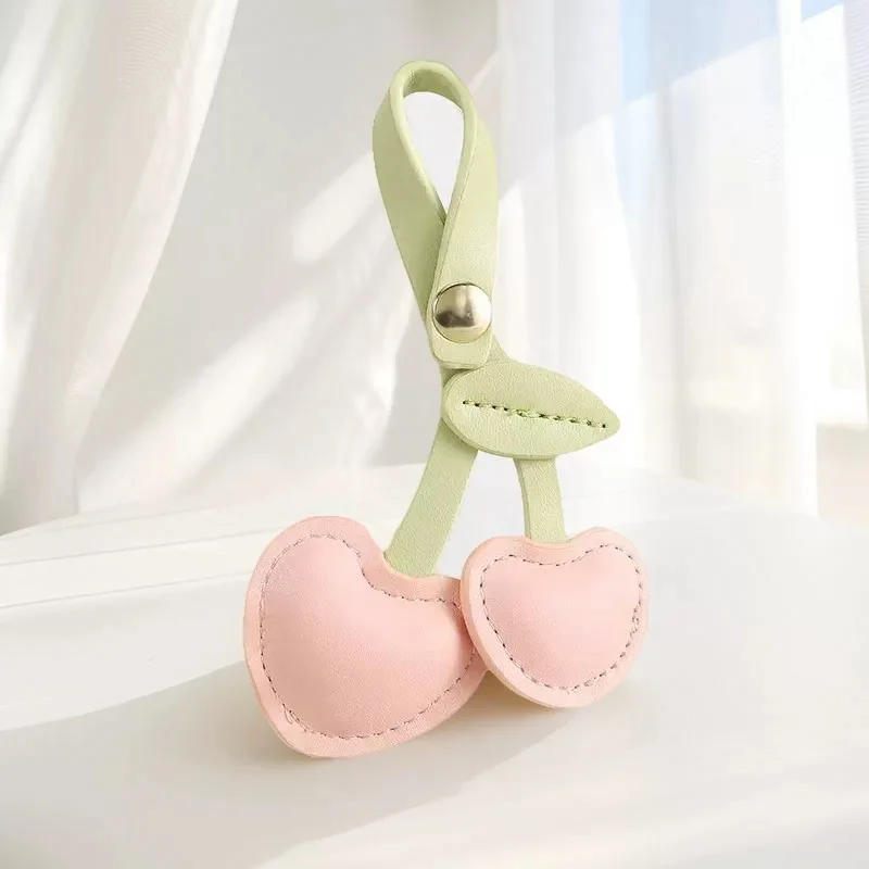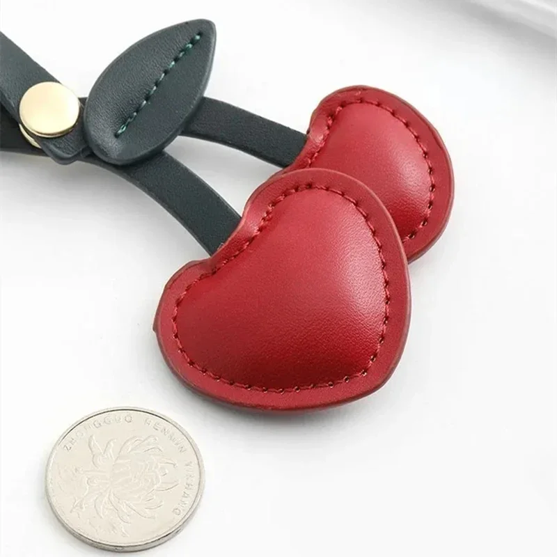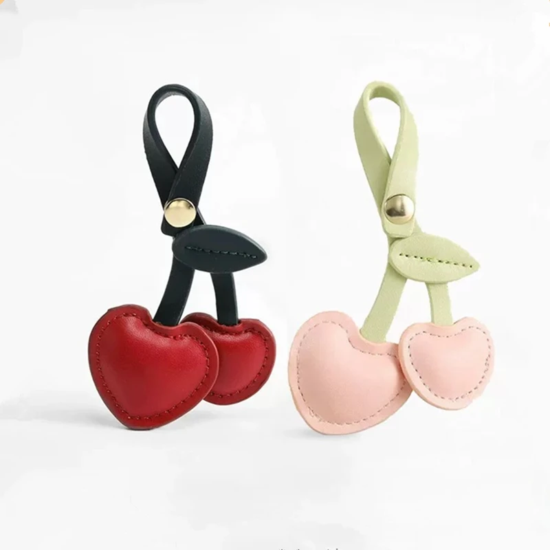 Cherry Charm Leather Decoration Pendant For Longchamp Mini Handbag Heart Shape Keychain Bags Attachment Parts Bag Charm