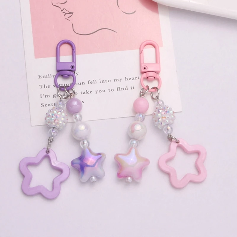 Gradient/Solid Color Star Charm Keychain Cute Pendant Car Keyring Backpack Decoration Fashion Bag Charm Jewelry Gift